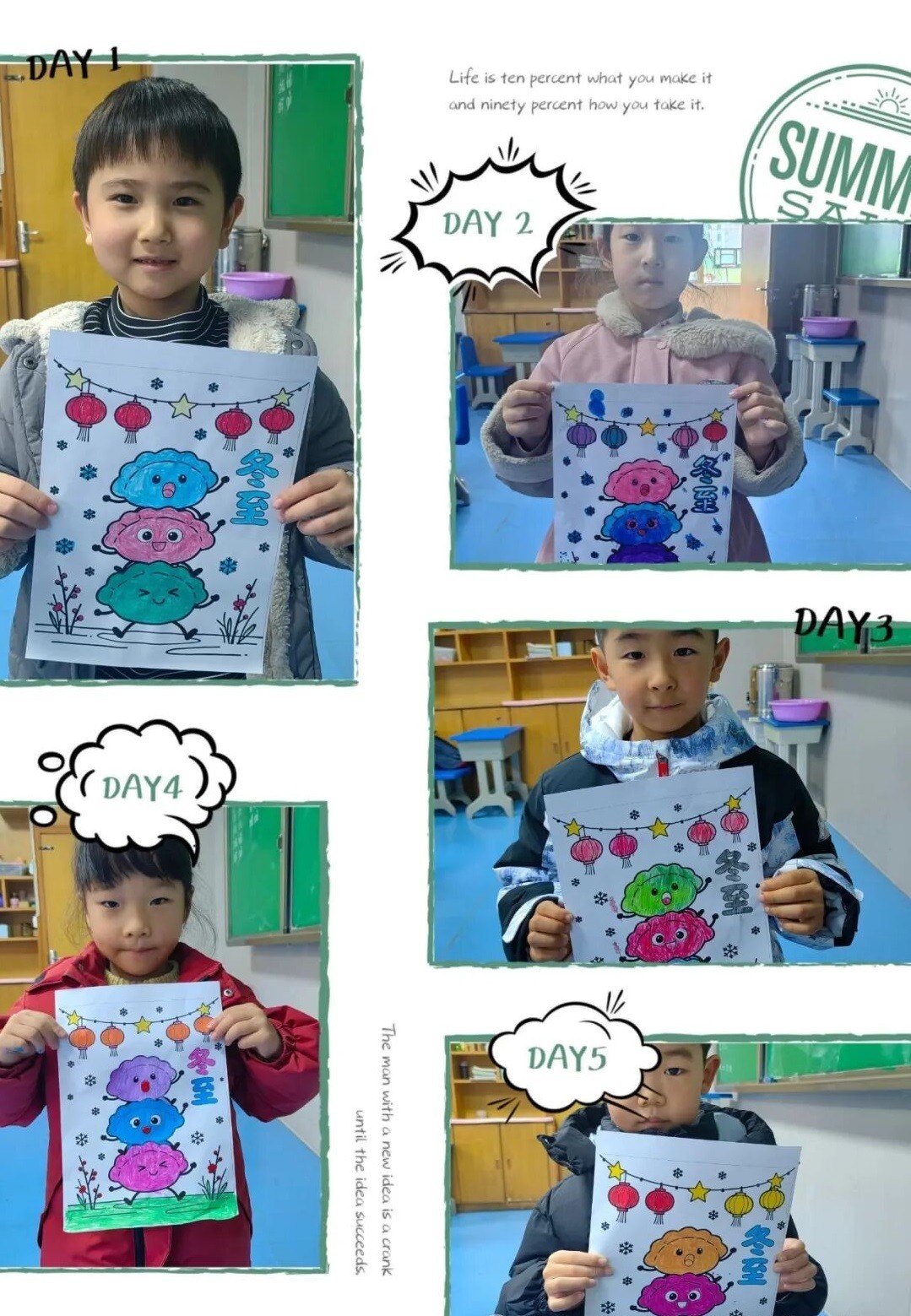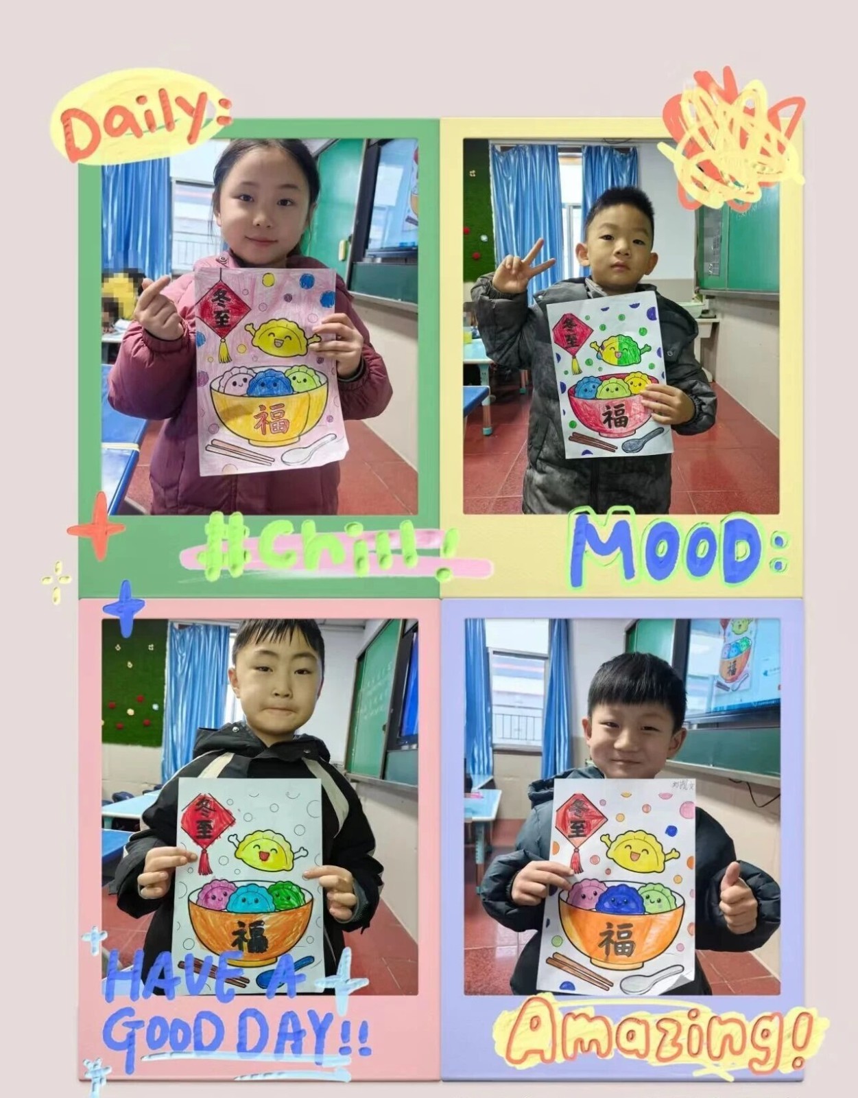 冬至這一天,孩子們制作了與冬至相關(guān)的手工作品和繪畫(huà),感受濃濃的節(jié)日氛圍!